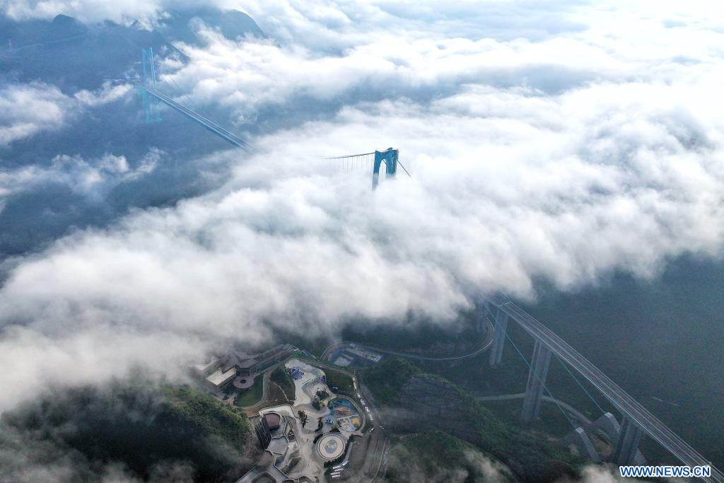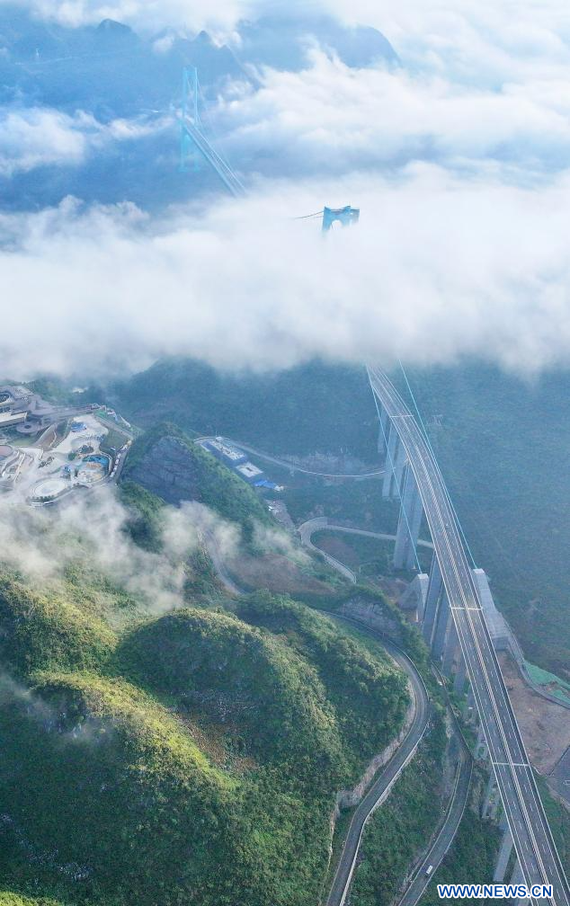 GUIYANG, 28 septembre (Xinhua) — Le plus haut pont du monde a été ouvert à la circulation dimanche matin dans la province chinoise du Guizhou (sud-ouest). Après trois ans de travaux, il permet de réduire le temps de trajet à travers un profond canyon de deux heures à seulement deux minutes.