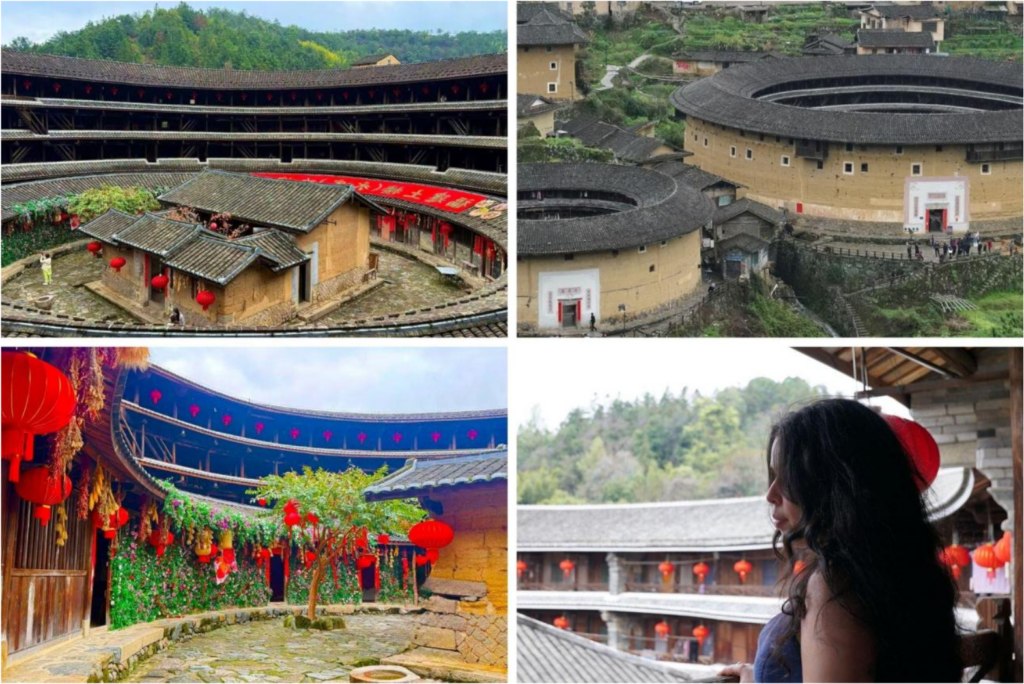 Les Tulou sont des bâtiments circulaires traditionnels en Chine, conçus pour abriter plusieurs familles dans un espace commun autour d’une cour centrale.