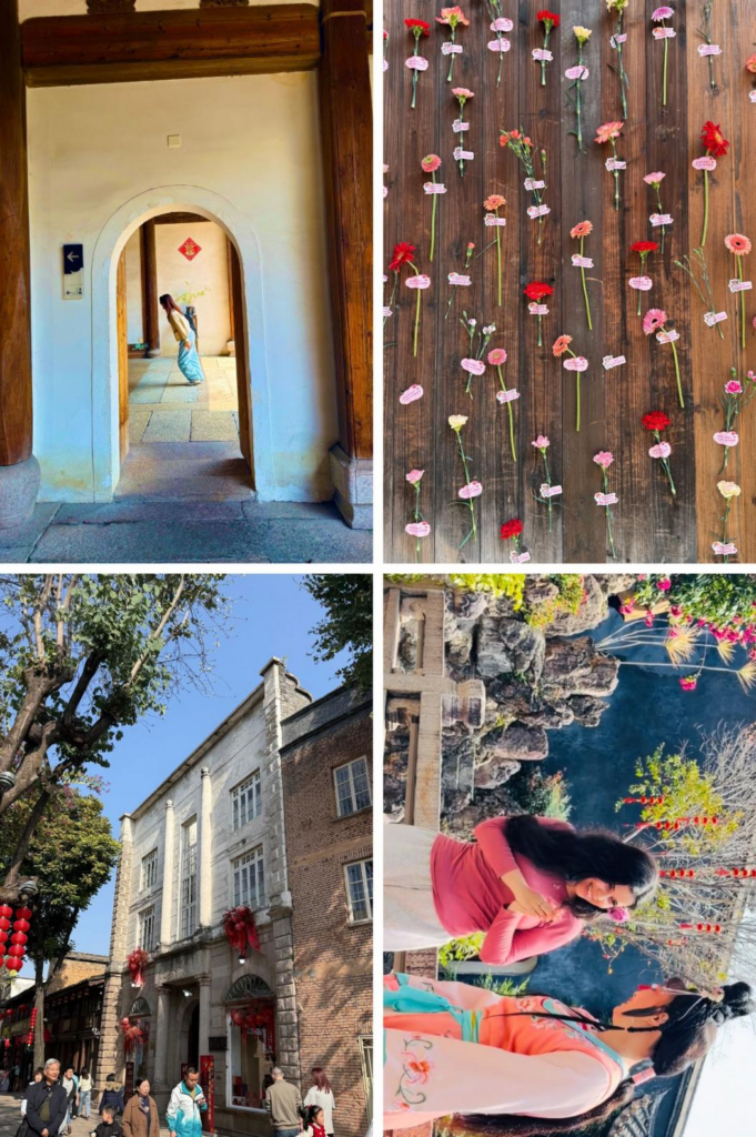 7. Au septième jour de notre périple, nous nous sommes rendues à Fuzhou pour découvrir le célèbre quartier historique de Sanfang Qixiang. Nous avons parcouru ces ruelles chargées d’histoire où se mêlent architecture chinoise traditionnelle et influences étrangères, héritées des échanges commerciaux et de l’ouverture maritime de la ville au XIXᵉ siècle.