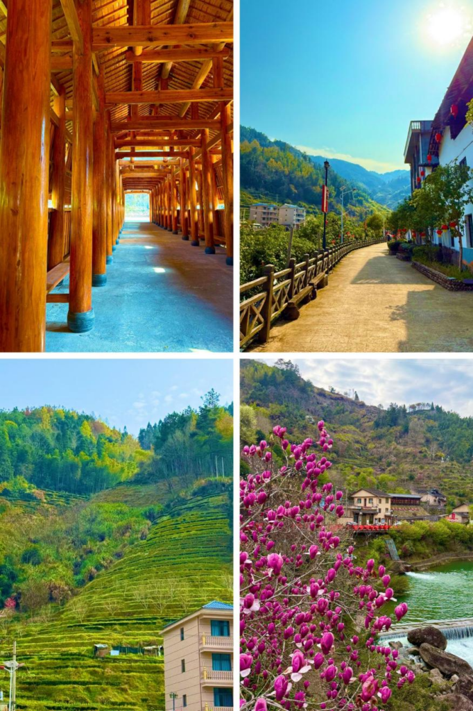 Le village lui-même, niché entre montagnes et rivières, est d’une beauté paisible. Les ponts élégants qui enjambent les cours d’eau et les barrages qui rythment la vallée semblent s’intégrer naturellement à l’environnement, donnant au lieu une atmosphère harmonieuse.