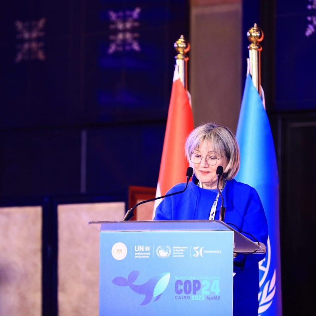 La ministre du Développement local et ministre de l’Environnement par intérim, Mme Manal Awad, a ouvert la 24e session de la Conférence des Parties à la Convention pour la protection du milieu méditerranéen contre la pollution (Convention de Barcelone) depuis le Caire, capitale de l’Égypte, l’un des pays les plus importants riverains de la Méditerranée. La conférence, qui s’est tenue du 2 au 5 décembre 2025, avait pour thème « Une économie bleue durable pour une Méditerranée résiliente et saine ». Y ont participé des ministres et des représentants de 21 pays méditerranéens, d’organisations régionales et internationales, Mme Tatiana Hima, coordinatrice du Programme des Nations Unies pour l’environnement et du Plan d’action pour la Méditerranée, M. Mitja Prešelj, président en exercice de la Conférence et représentant de la Slovénie, des chefs de délégations officielles et des représentants de la société civile.