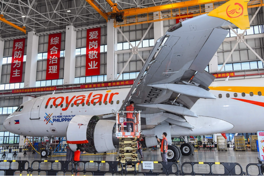 « Celui-ci vient de Jordanie, et ces deux-là viennent du Vietnam… le plan de maintenance est prévu jusqu’à fin 2026 », a expliqué Gu Zhilin, directeur de la base de maintenance Grand China Aviation Maintenance, une filiale de HNA Technology, ajoutant que depuis sa mise en service en 2022, la base industrielle de maintenance aéronautique à guichet unique a effectué des travaux de maintenance aéronautique sur plus de 2 400 avions, desservant près de 50 compagnies aériennes nationales et étrangères.